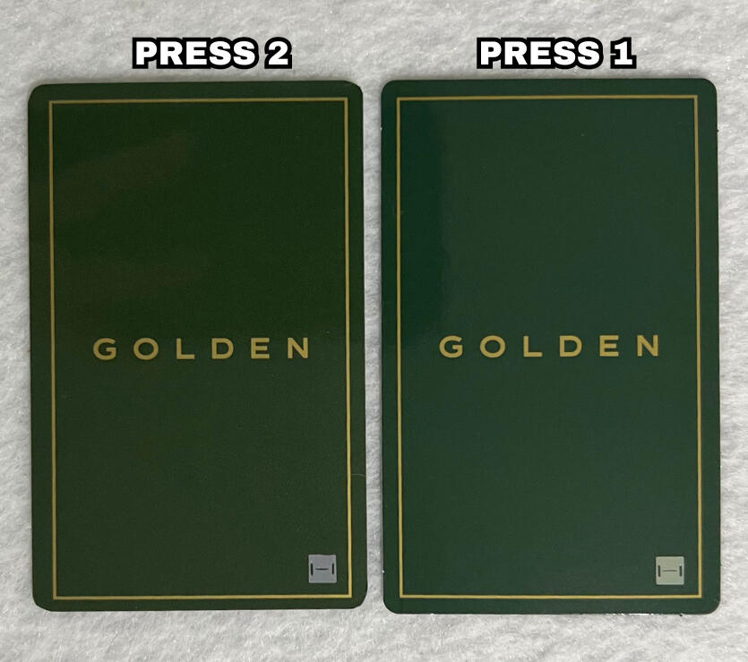 COLOR: The first visible difference in the presses is the coloring. The old press photocards have a more pink/cool tone to them, whereas the new press photocards have a more yellow/warm tone to them.